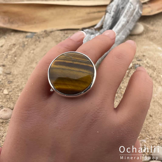 Tijgeroog zilveren ring maat 59