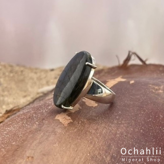 Labradoriet ruw zilveren ring maat 62+
