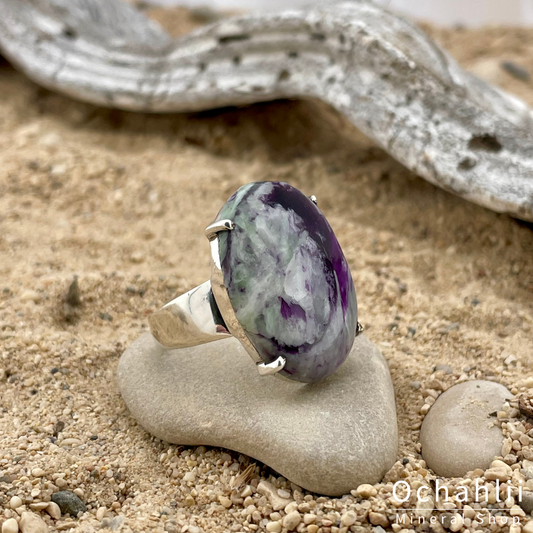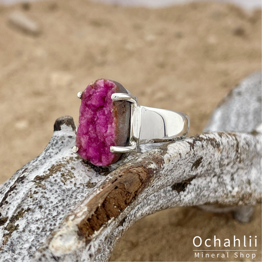 UitverkochtKobalt Calciet ruw zilveren ring maat 54