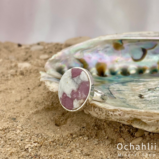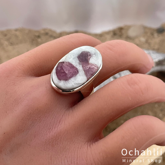 Tourmaline pink (Rubellite) on Quartz silver ring size 54