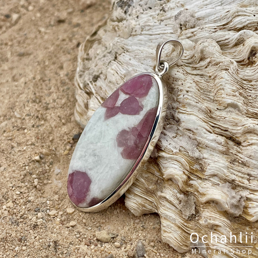 Tourmaline pink (Rubellite) on quartz silver ring size 59
