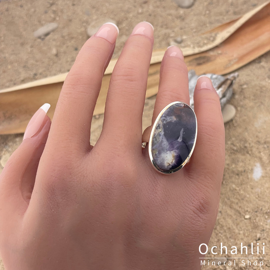 Améthyste étoilée - Bague en argent Elestial (Mexique) taille 55