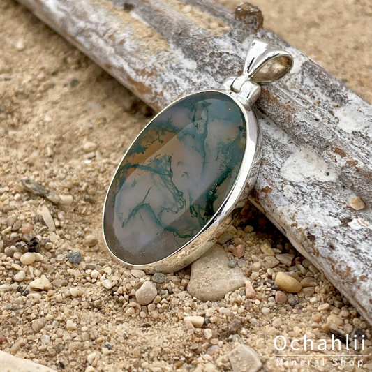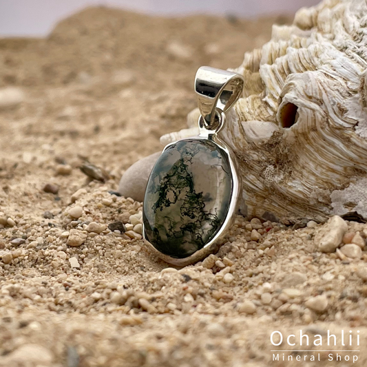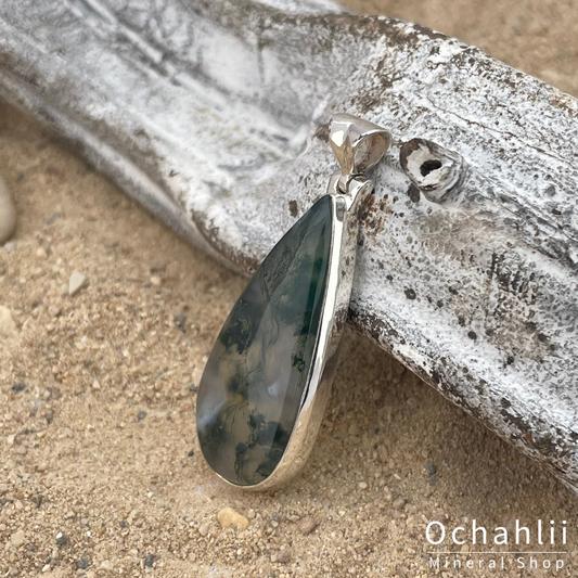 Pendentif en argent agate mousse
